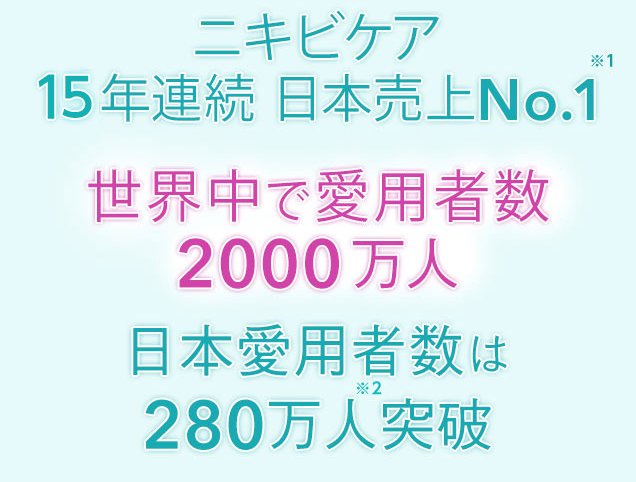テレビコマーシャルで、ニキビの悩みを抱える10代の若者や、そのお母さん、お父さんから絶大な支持を得ています。